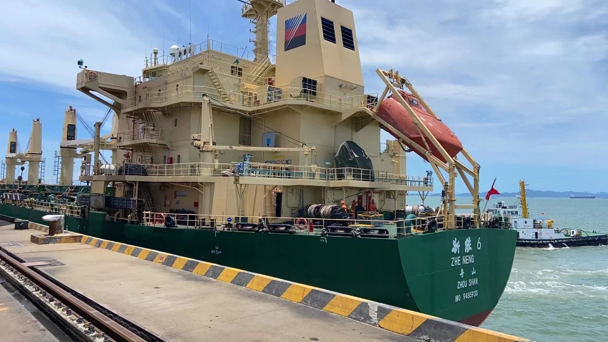 “浙能6”輪在電廠泊位搶卸煤炭。 鐘發春 攝
