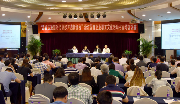 為學(xué)習(xí)貫徹落實(shí)黨的十九大精神,紀(jì)念改革開放40周年,5月26日,由浙能集團(tuán)、西泠印社文化藝術(shù)發(fā)展有限公司承辦的“昂首走進(jìn)新時(shí)代 闊步開啟新征程”浙江省國(guó)有企業(yè)職工書法培訓(xùn)班在杭州正式開班,為繁榮國(guó)資國(guó)企文化,豐富企業(yè)職工文化生活產(chǎn)生積極的推動(dòng)作用。浙江省國(guó)資委宣傳處處長(zhǎng)范紅出席開班儀式并講話。來自浙江省國(guó)有企業(yè)的200名職工書法愛好者參加開班儀式。集團(tuán)政治工作部主任夏守慧主持開班儀式。