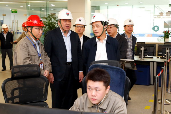 省國(guó)資委領(lǐng)導(dǎo)陳月亮深入嘉華發(fā)電公司集控室了解企業(yè)生產(chǎn)情況。鄭嘯 攝