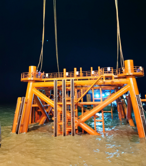 浙能嘉興1號海上升壓站導管架吊裝成功
