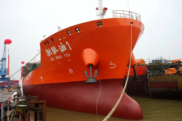 浙能集團首艘新建的萬噸油船“浙能油1”輪順利下水