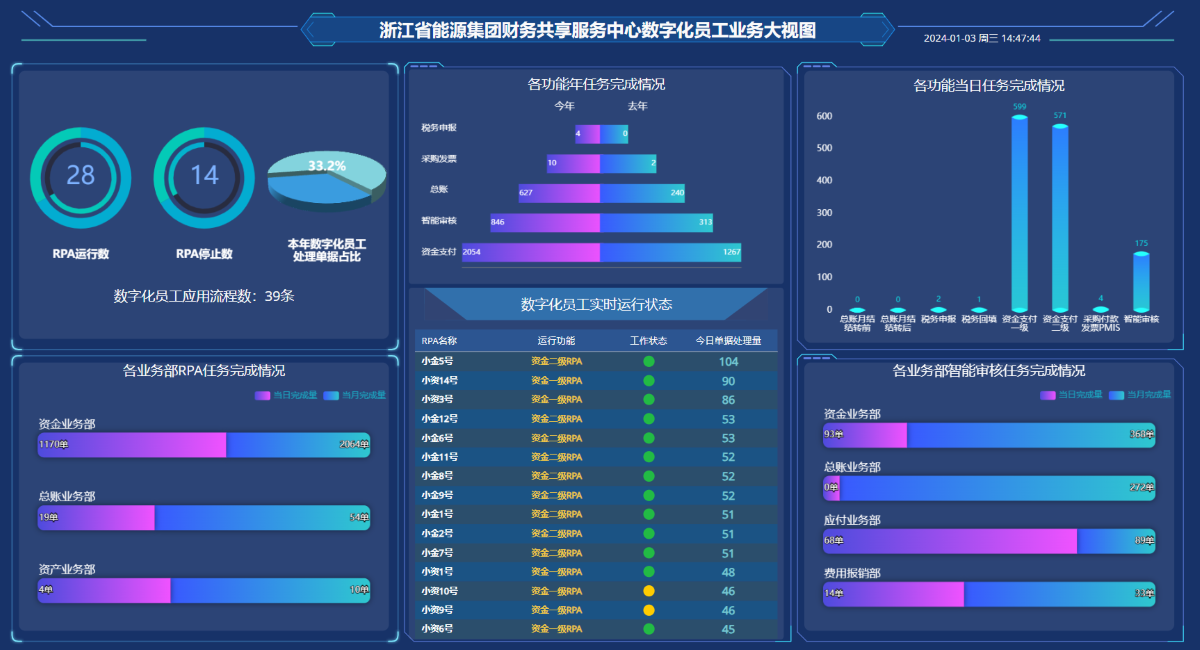 浙能財(cái)務(wù)共享運(yùn)營平臺上線以來已推廣21批線上運(yùn)行427家單位,開發(fā)129支標(biāo)準(zhǔn)化流程,與SAP等20個(gè)業(yè)財(cái)系統(tǒng)實(shí)現(xiàn)集成,覆蓋用戶3萬余人,從無到有打造以智能化、流程和數(shù)據(jù)驅(qū)動、業(yè)財(cái)稅資檔一體貫通、財(cái)務(wù)風(fēng)險(xiǎn)控制和財(cái)務(wù)人才培養(yǎng)為主,富有浙能特色、不斷迭代升級、賦能價(jià)值創(chuàng)造的財(cái)務(wù)共享金名片,走在浙江國資國企前列。在數(shù)智化方面,該平臺采用統(tǒng)一架構(gòu)的端到端數(shù)字化平臺,利用IPA智能流程自動化、OCR智能審核、AI、NLP自然語言處理、全場景遠(yuǎn)程辦公等先進(jìn)技術(shù)手段,搭建起流程、審核、運(yùn)營和數(shù)治四個(gè)方面組成的智能應(yīng)用體系,實(shí)現(xiàn)憑證和支付自動化率雙雙超過99%,其中數(shù)字員工、數(shù)字化監(jiān)督看板、智能語音提單、智能派單、智能客服等一批功能應(yīng)用頗具特色、業(yè)內(nèi)領(lǐng)先,榮獲上國會“2022年智能財(cái)務(wù)最佳實(shí)踐年度綜合大獎(jiǎng)”。